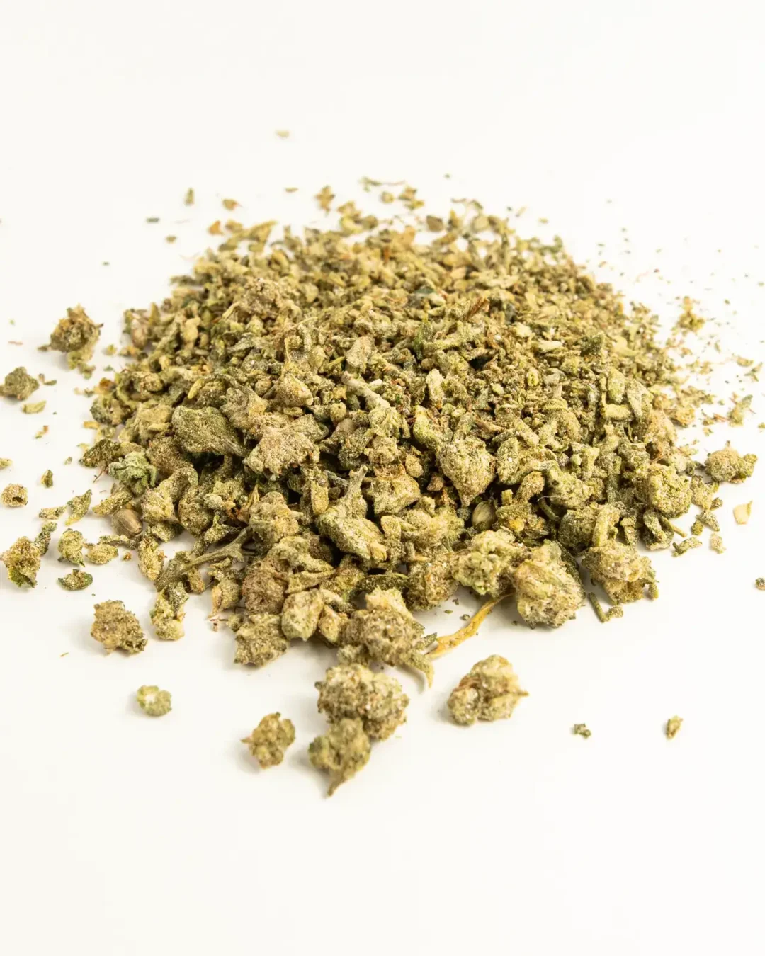 Samlarobjekt av trim, shake och mini buds från Black Widow Buds med upp till 20% THCA, cirka 10% THCNM.